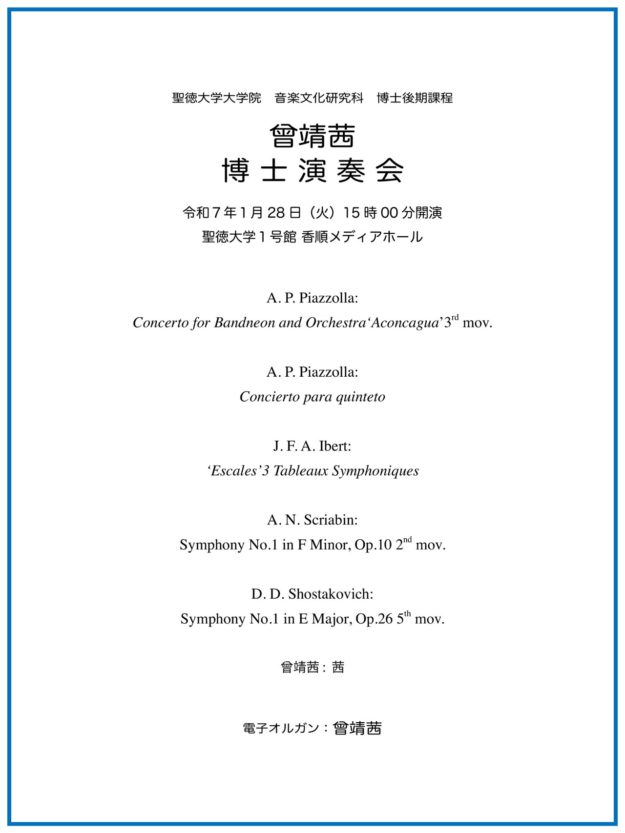 2名は博士演奏会で、それぞれの研究テーマに沿ったプログラムを見事に披露しました。