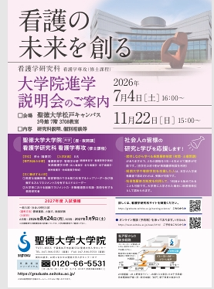 【聖徳大学大学院看護学研究科】オンライン個別相談 随時受付中!!(電話相談も可です!)